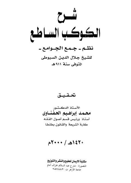 كتاب شرح الكوكب الساطع نظم جمع الجوامع ت الحفناوي مصر اسلامية