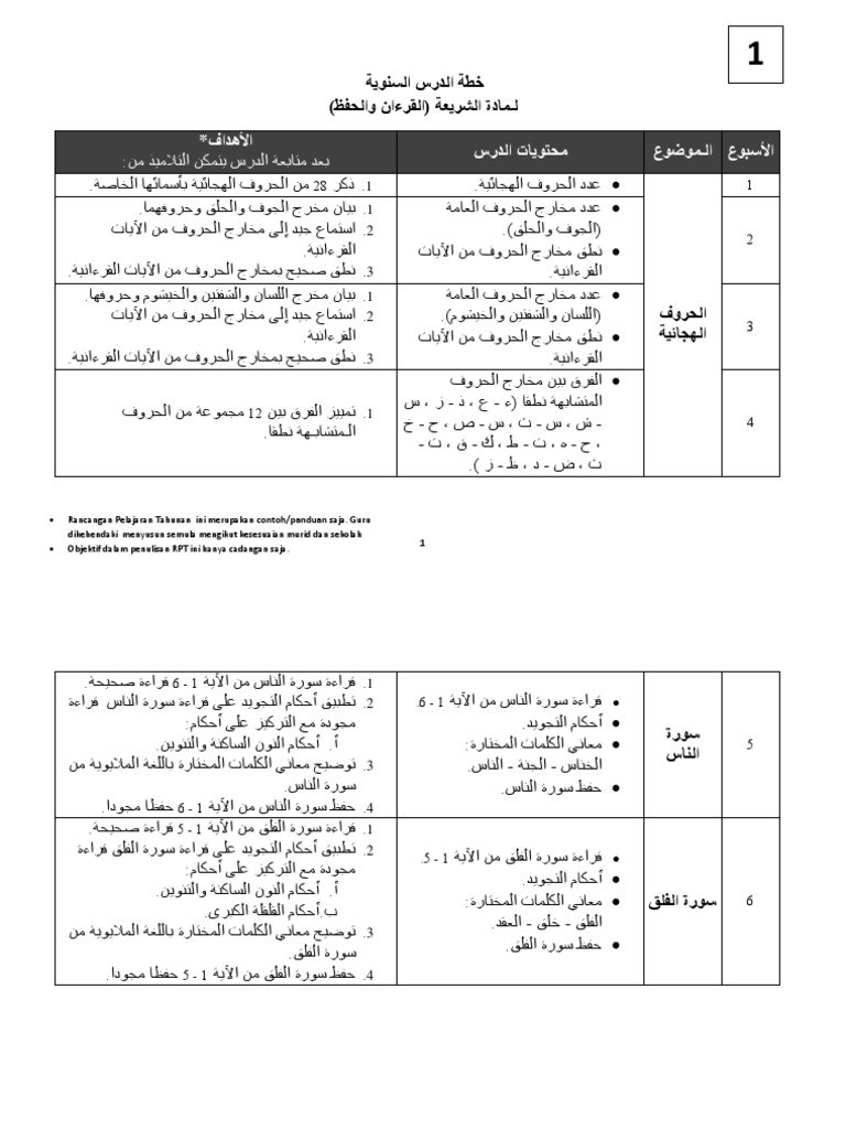خطة الدرس السنوية القرءان والحفظ للسنة الأولى Docx
